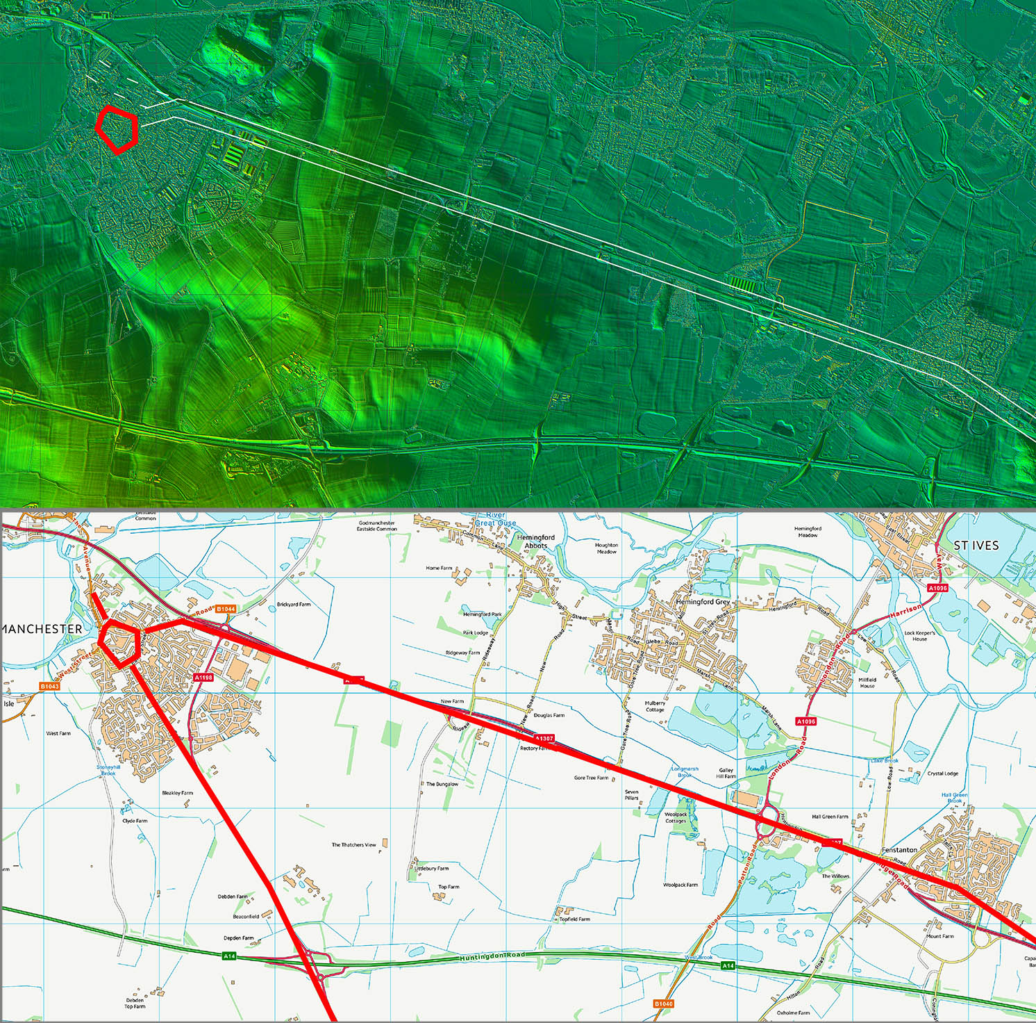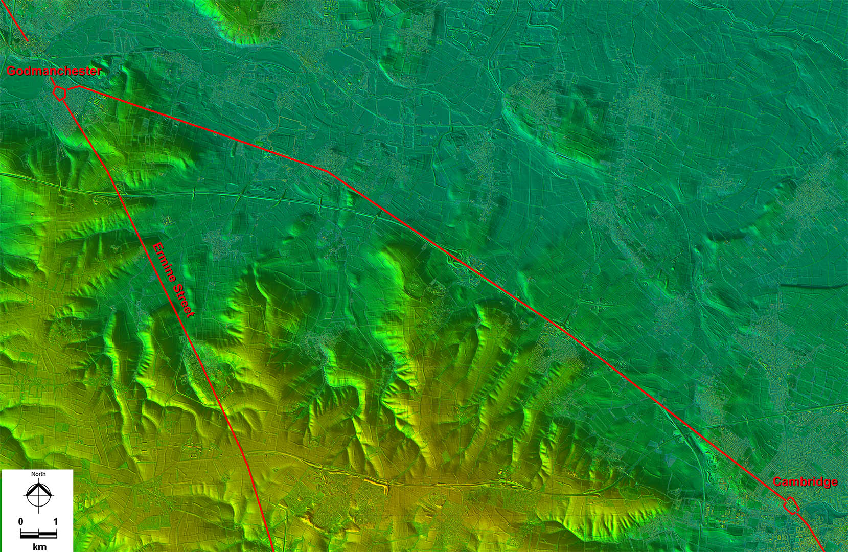 The Roman Road from Cambridge to GodmanchesterMargary Number: 24Distance: 14 miles The so-called Via Devana although the name is a fanciful 18th century creation and a direct route to Chester (Deva) is stretching credibility somewhat. Today Roman evidence has just about been wiped out by multiple upgrades to the A14 trunk road. Ostensibly two main alignments with its main change of direction at Fenstanton although there was a slight deviation at Bar Hill.. Roman Roads, 22, 2b (Ermine Street) and 24 (Via Devana) were all heading for the crossing point of the Great Ouse River.