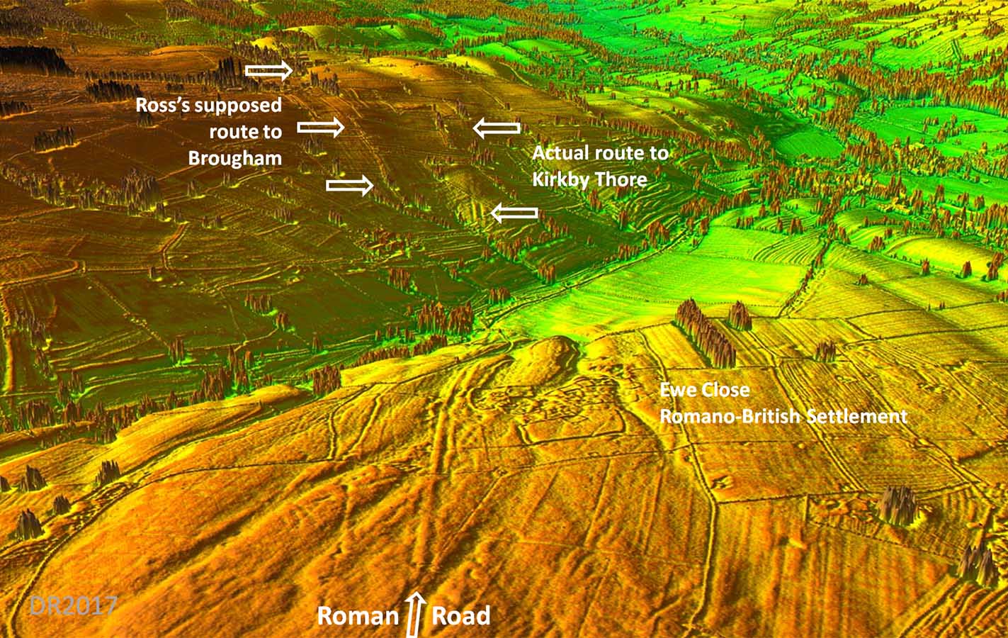 The Roman Road from Low Borrowbridge to Kirkby Thore, Margary 7dThis was the breakthrough road that began the Lidar revolution and changed the course of history - well the course of this road at least! It was the late Hugh Toller who discovered the true destination of this road was Kirkby Thore not Brougham using the first publicly available Lidar data. Until 1920 this road was lost beyond Crosby Ravensworth but assumed, on the basis of its general alignment, that Kirkby Thore was its likely destination but without any evidence to confirm it. However, when in 1920 Percival Ross also failed to find any evidence for this, he made the erroneous conclusion that it must have gone to Brougham. He was quite adamant saying there "never was a road to Kirkby Thore". Since then every book and map has shown the road going to Brougham. Hugh had a big job trying to overturn convention and his report on his discovery (C&WAAS 2014) had to include that the route to Brougham was also probable - i.e. two roads. Hugh never believed this (personal comments) and I agree with him. The Brougham route was a mistake - plain and simple.