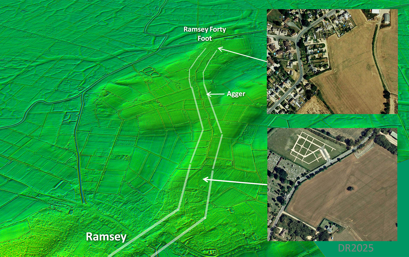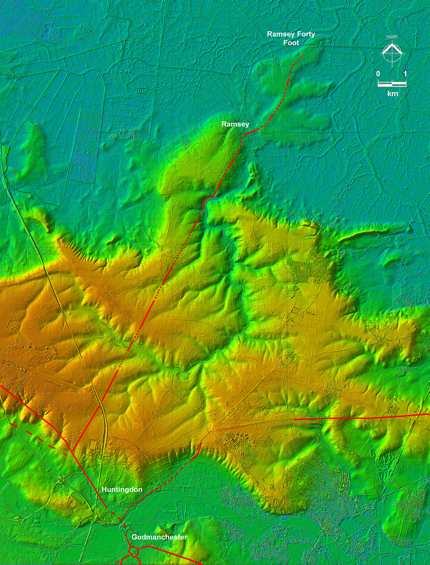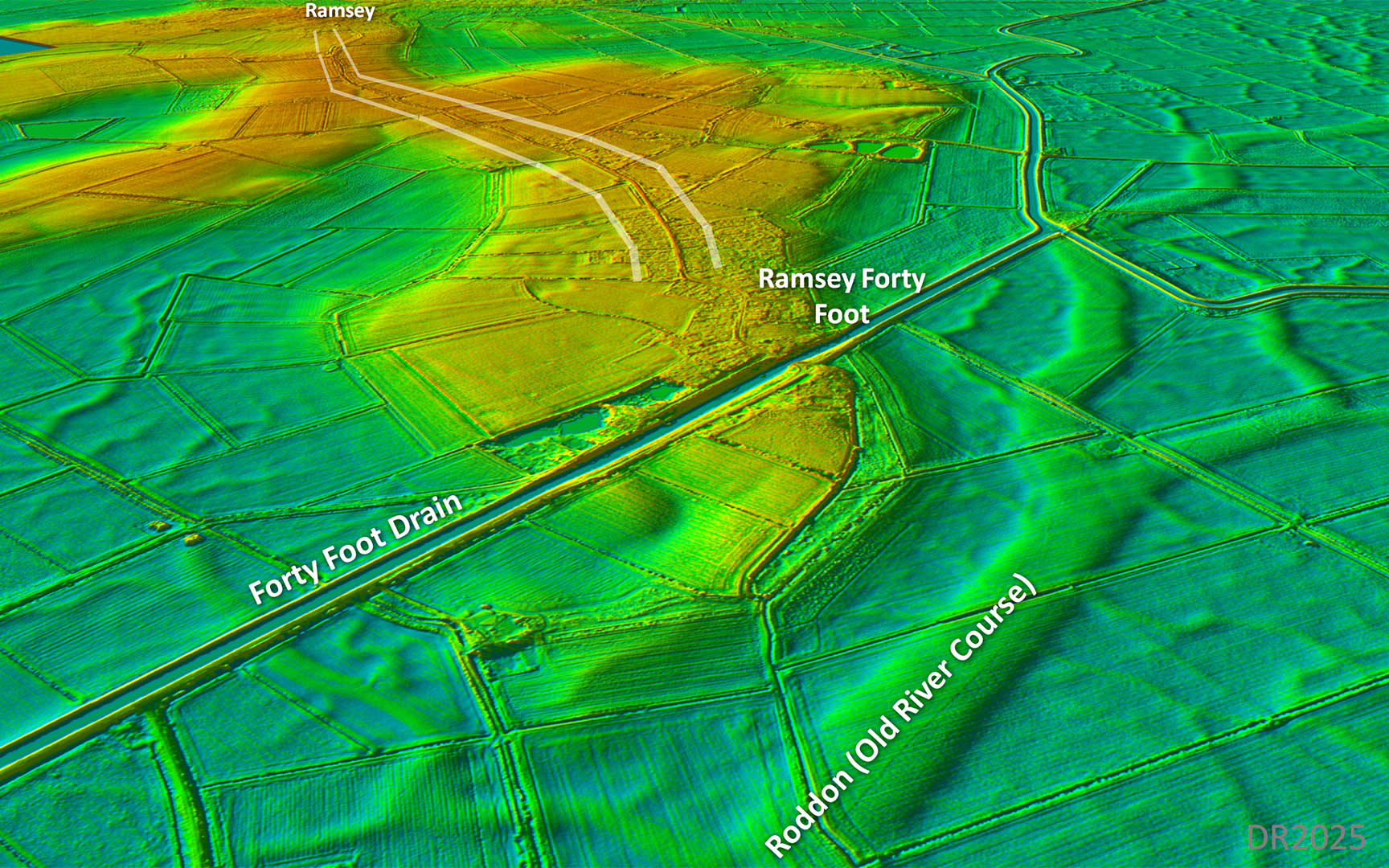The old River roddon can be made out beyond Ramsey Forty Foot and would have provided onward communications in Roman times.