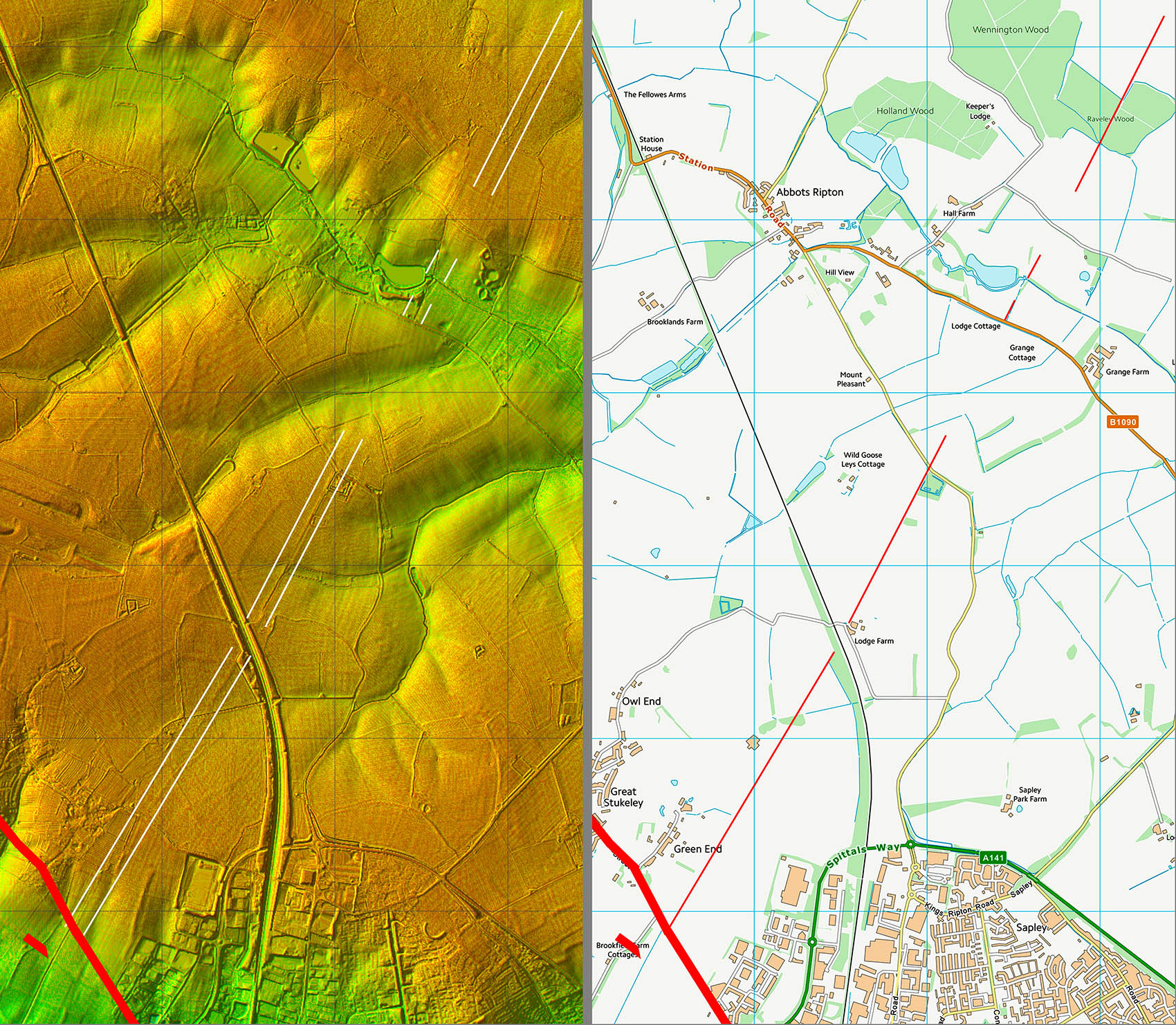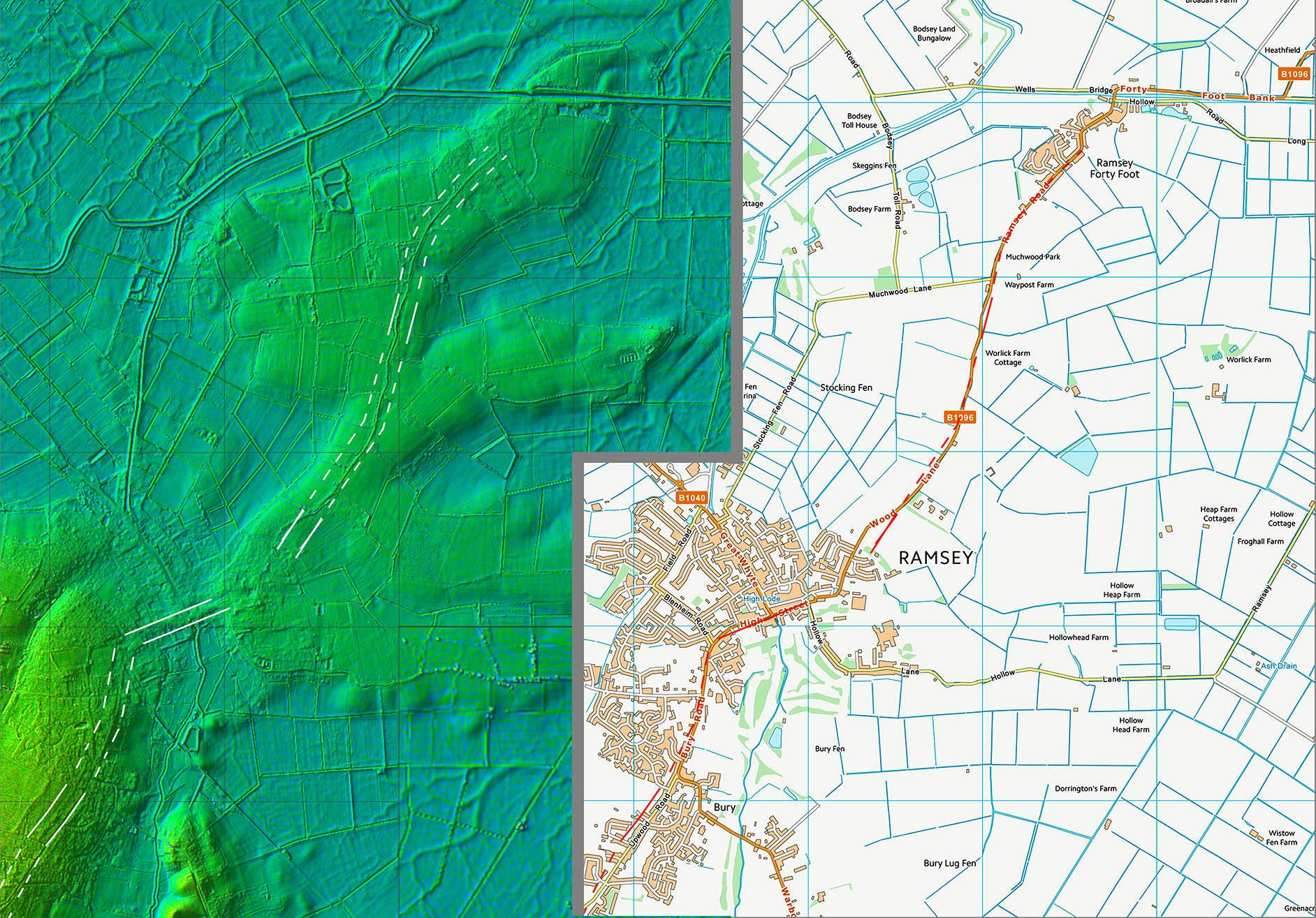 Lidar Image - Full Route from Great Stukeley (Godmanchester) to Ramsey Forty Foot