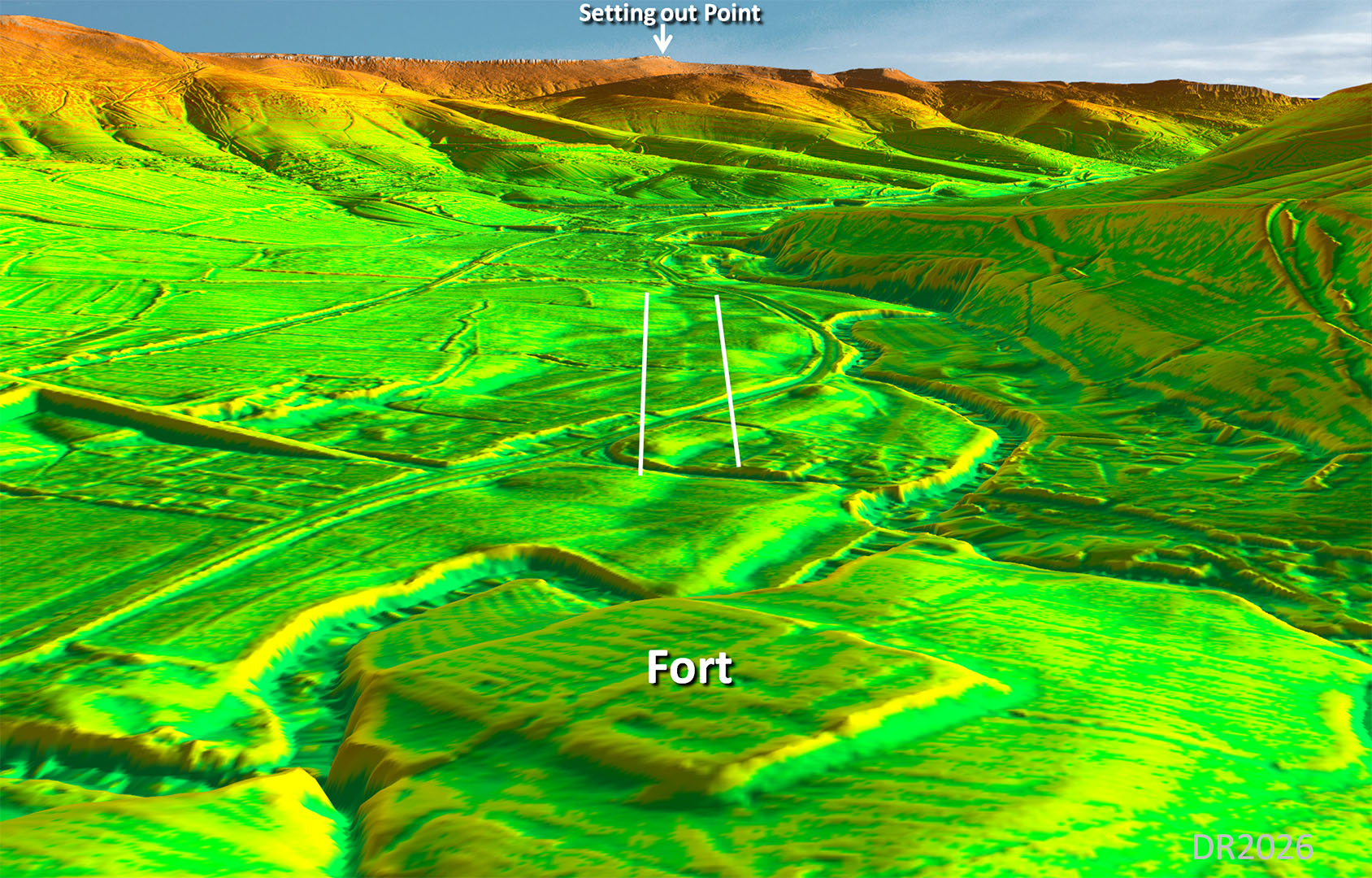 The reverse view to above looking from over the fort to the (suggested) setting out point. It is so obvious that it must be how they set the road out and decided its onward course down Ringinglow Road.