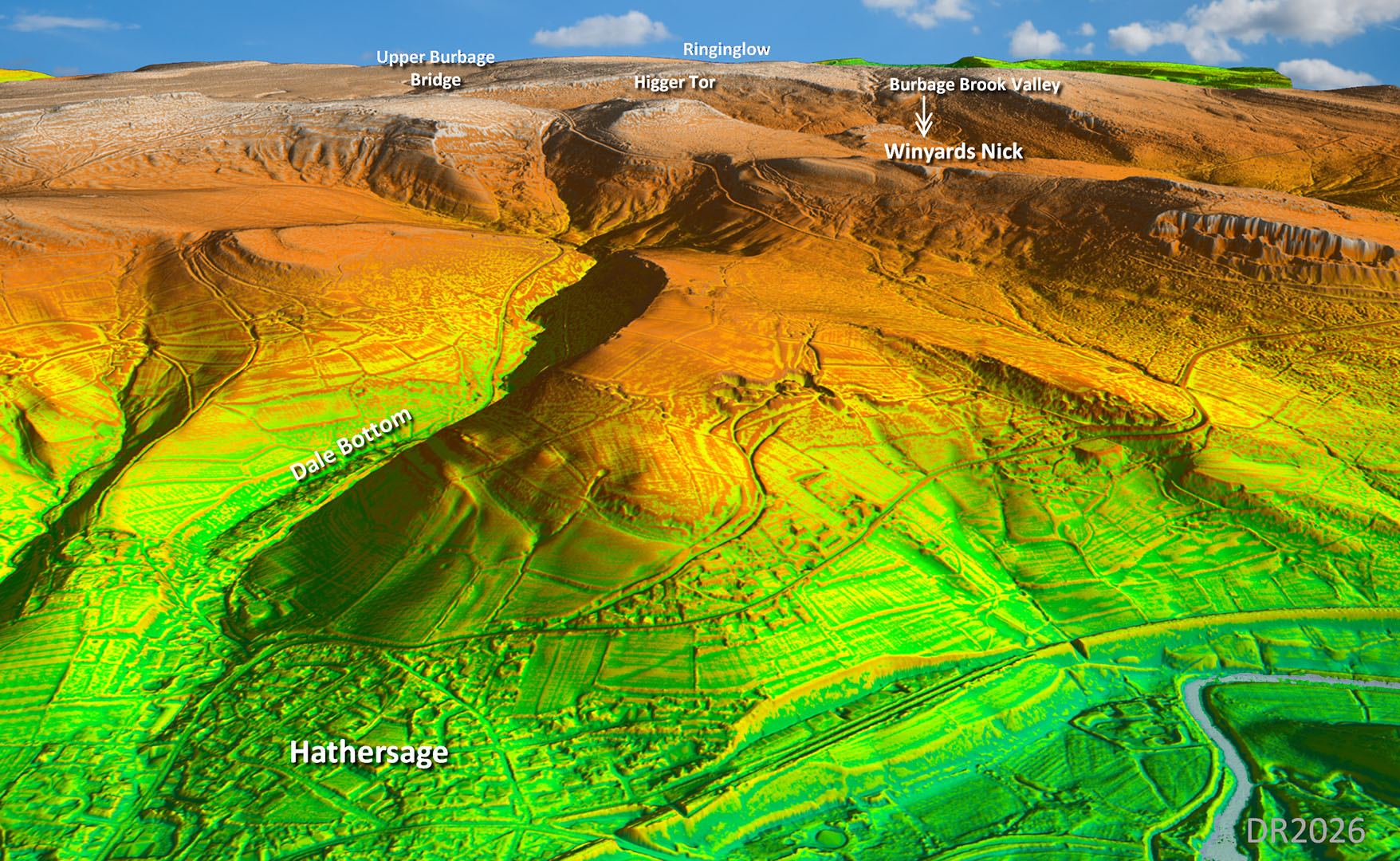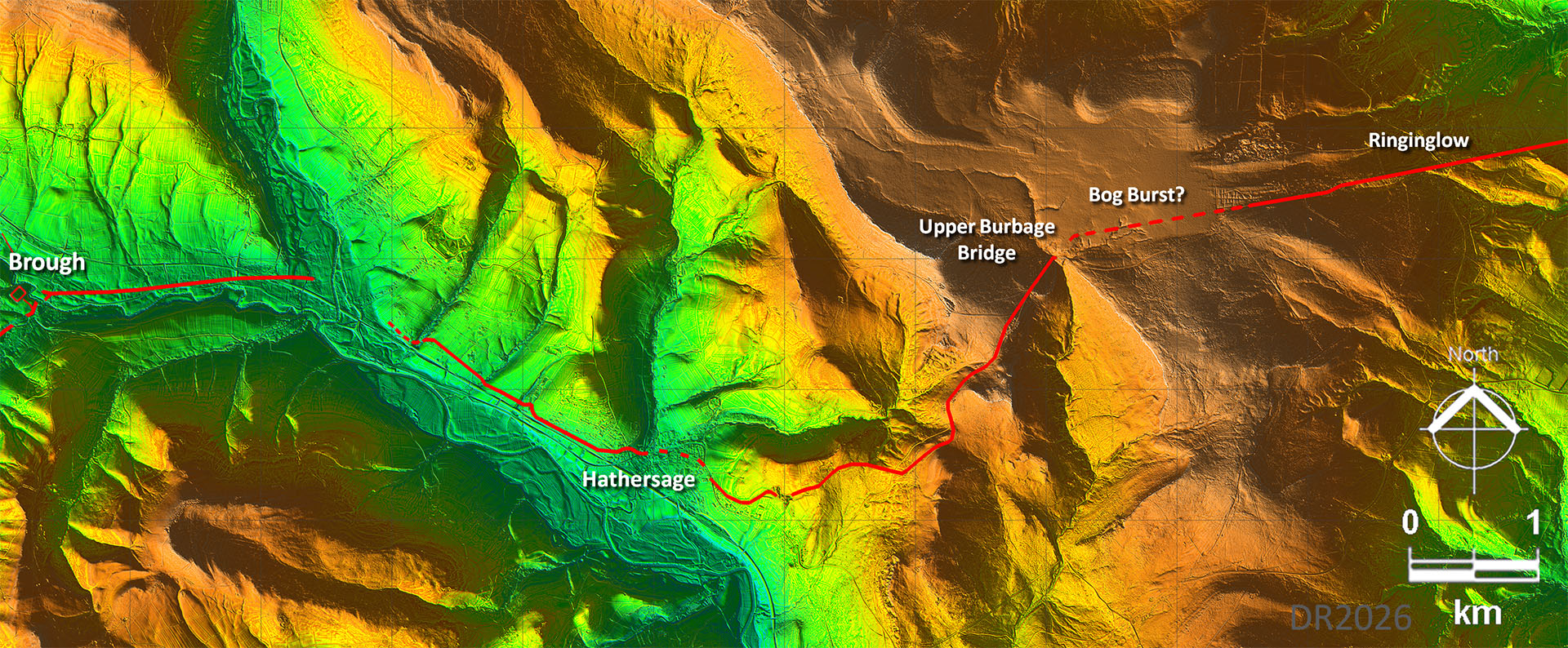 Derbyshire HER shows a different route over the Moor further to the south of mine and is described as "possible" - see later. We are all guessing somewhat but I offer mine as a viable alternative.