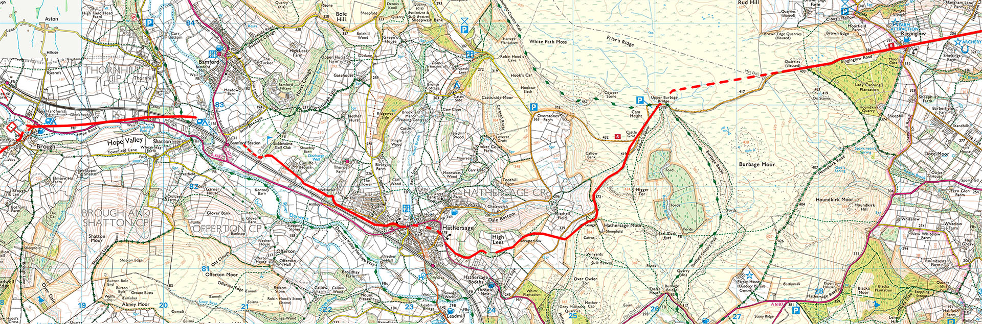 There is a shorter route via Chatsworth/Dale Bottom but it involves a long steep 1 in 5 climb. This was the Sparrowpite Gate Turnpike so relatively modern. The Turnpike was later upgraded with a big loop to avoid that 1 in 5 climb.