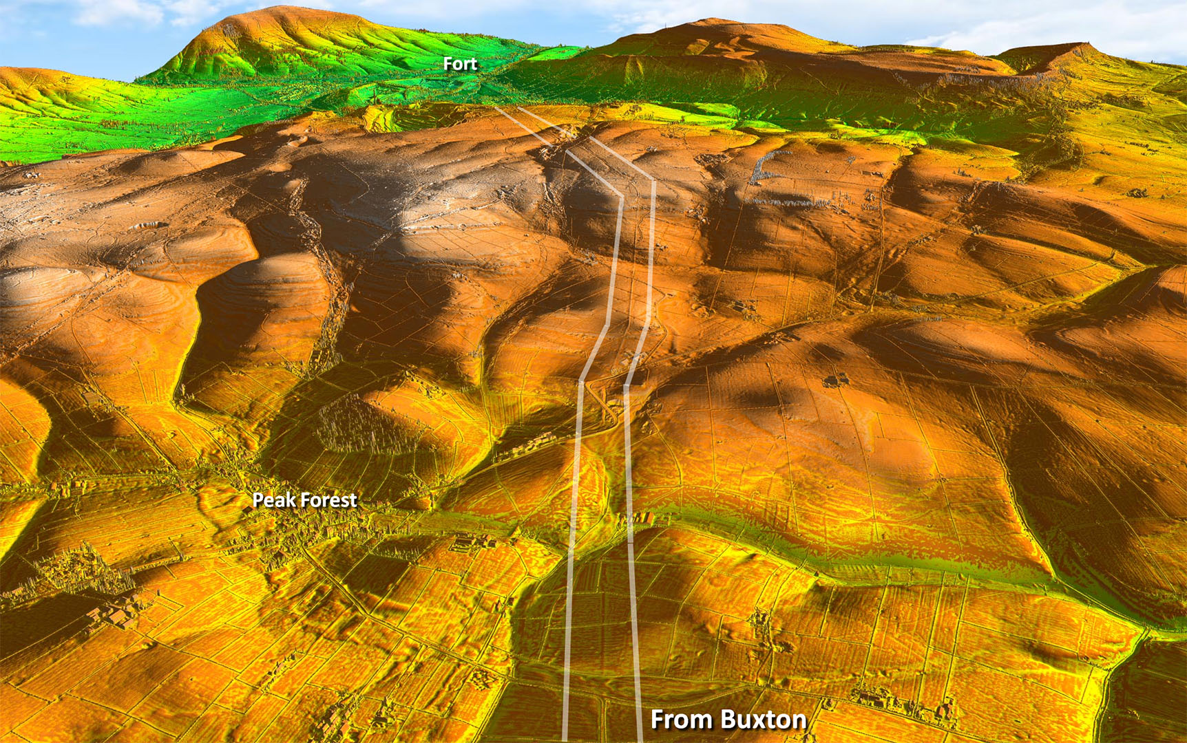 Oblique 3D Lidar Image - leaving Buxton