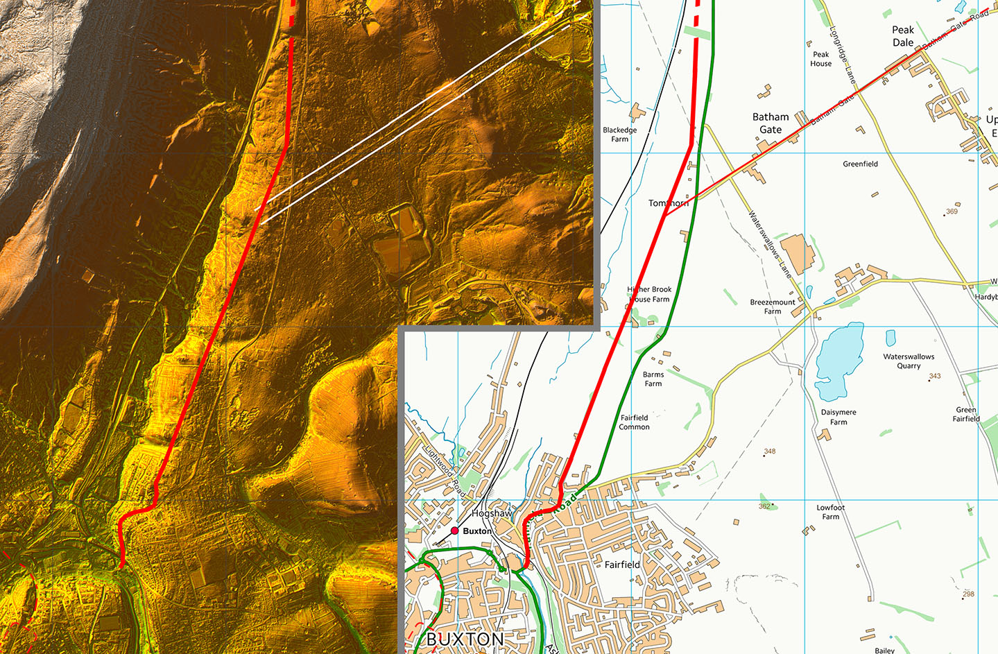 Buxton, Lidar & Map - Possible Fort site and routes
