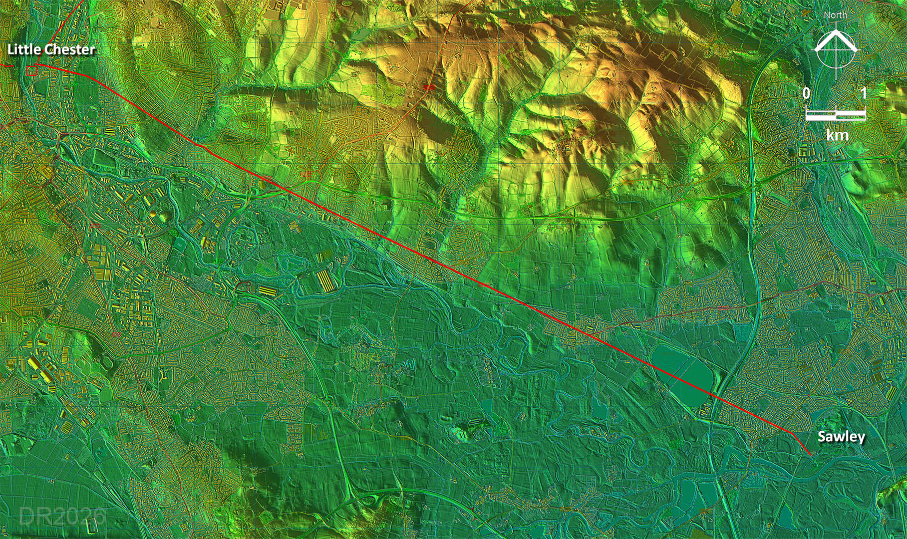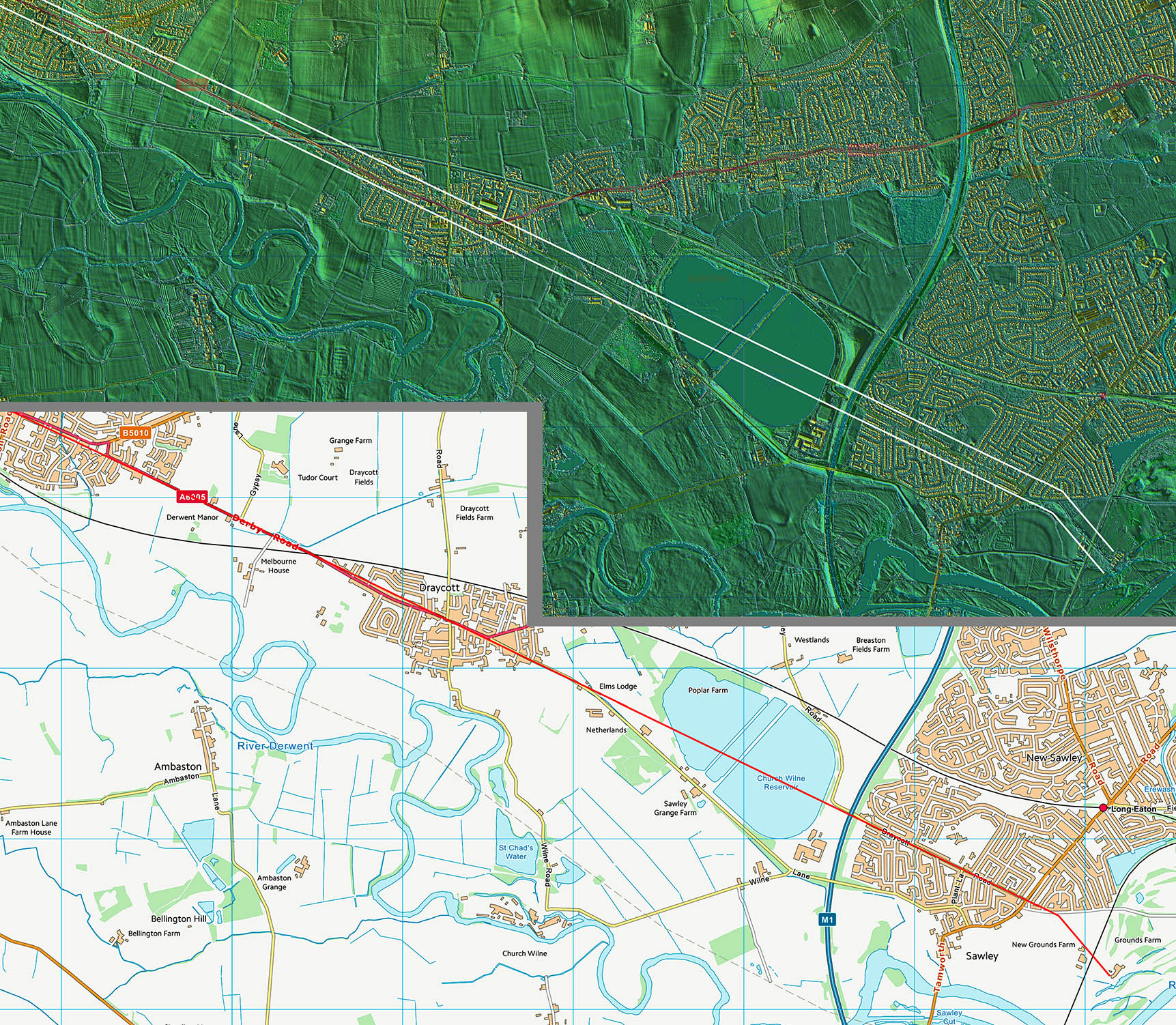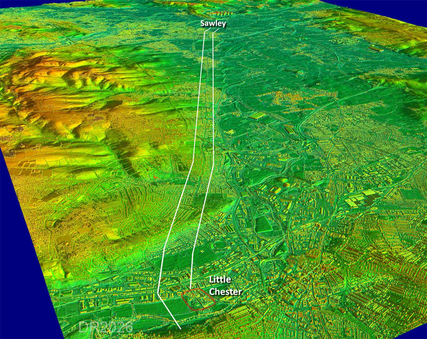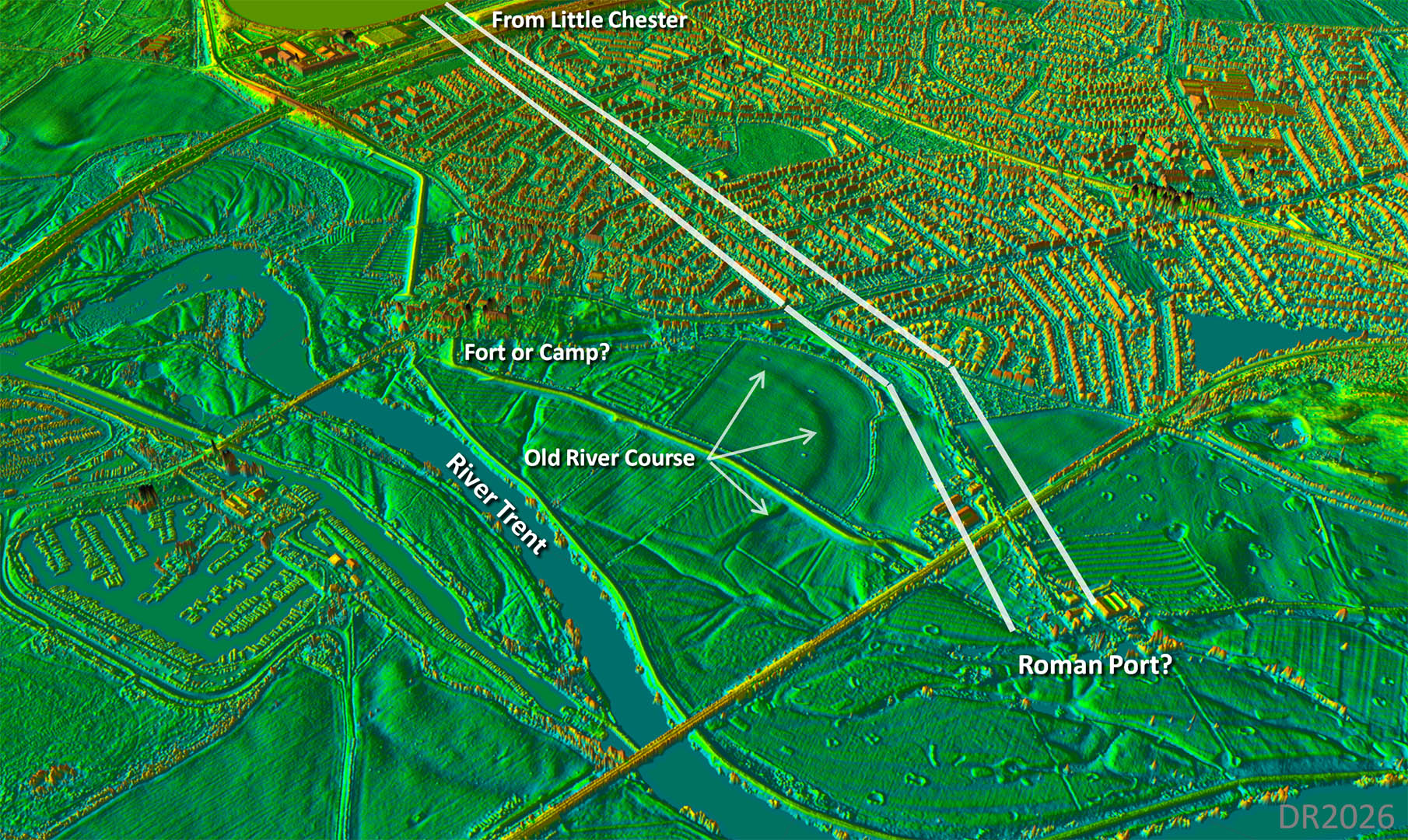 The Roman Road from Little Chester to Sawley, Long EatonMargary Number: 182Distance: 8.5 miles Almost certainly a road connecting Little Chester to a port on the River Trent at Sawley. No extension of the road is evident making a port destination the most logical conclusion. Lead pigs from Carsington (Lutudarum) could have been transported via this road and out via the Trent - see later.