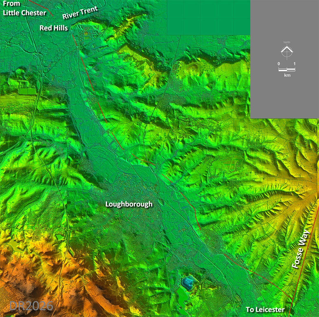The Roman Road from Little Chester to Sawley, Long EatonMargary Number: 182Distance: 8.5 miles Almost certainly a road connecting Little Chester to a port on the River Trent at Sawley. Lead pigs from Carsington (Lutudarum) could have been transported via this road and out via the Trent - see later. There was a continuation Roman road on the south side of the River Trent starting at Red Hills and heading down the east bank of the River Soar to the Fosse Way. This road is in Nottinghamshire and Leicestershire. |