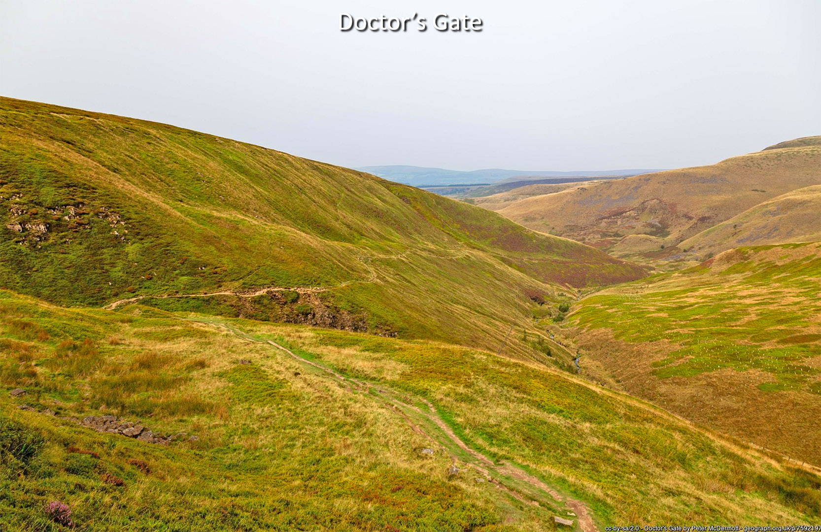 Doctor's Gate looking back We are looking back from below the zig-zags shown in the above image. It does look like a packhorse track at best. Certainly not a Roman road. Image: Creative Commons - Peter McDermott |