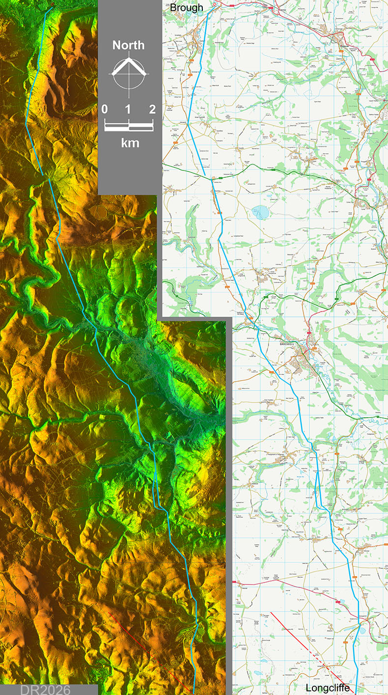 The (Possible) Roman Road from Longcliffe to Brough, PortwayMargary Number: NoneDistance: 18 miles Portway was a pre-Roman track way going north-south through the county. Roman Portway - if it is real - was a later adaption running from Longcliffe on the Street to Brough. I have strong doubts as to its reality but what is presented here is largely down to what Derbyshire HER records. There is some Lidar evidence south of Bakewell but not the strongest. North of Bakewell then virtually nothing. That is a big worry!
