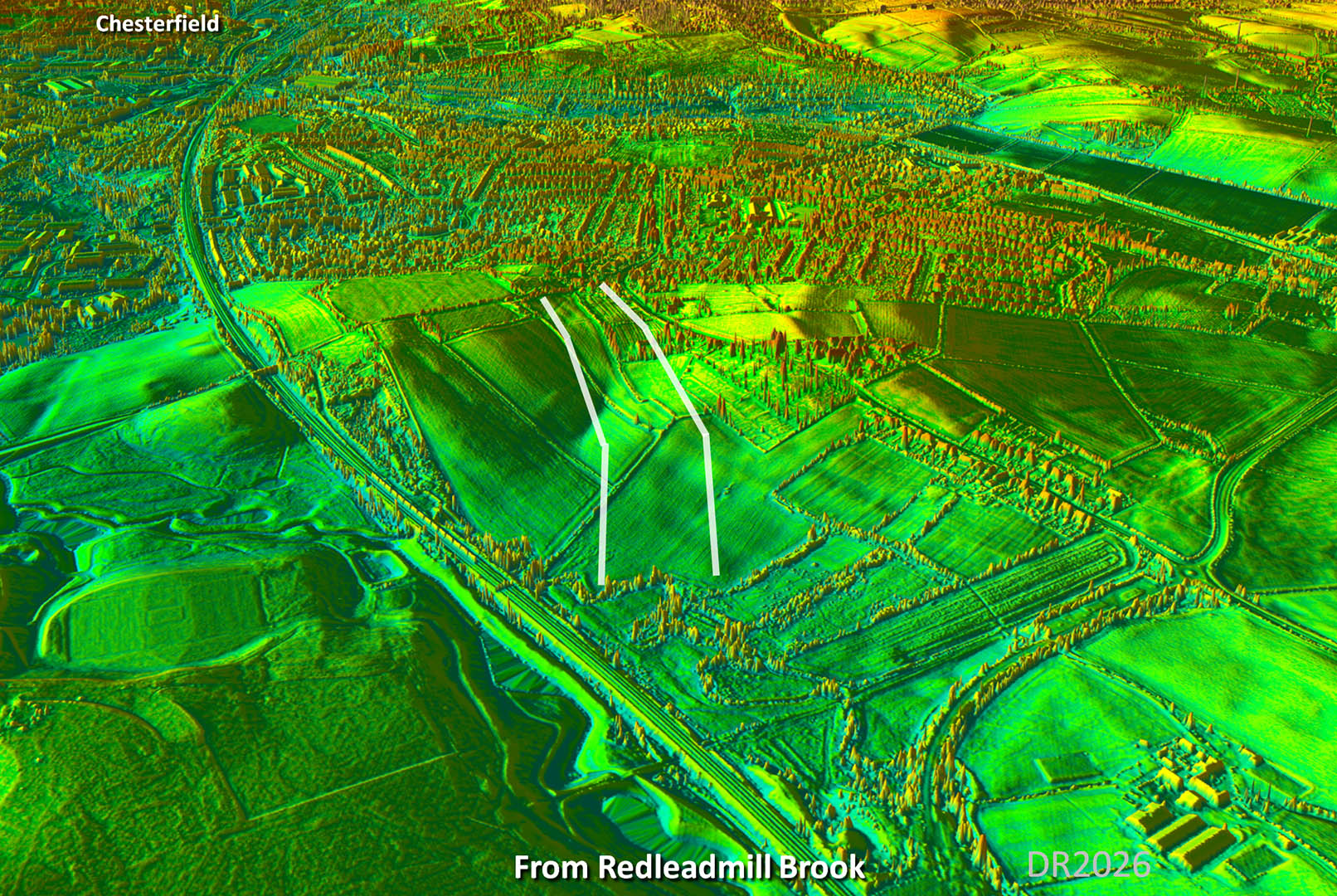 Oblique 3D Lidar Image - New Suggestion approaching Chesterfield