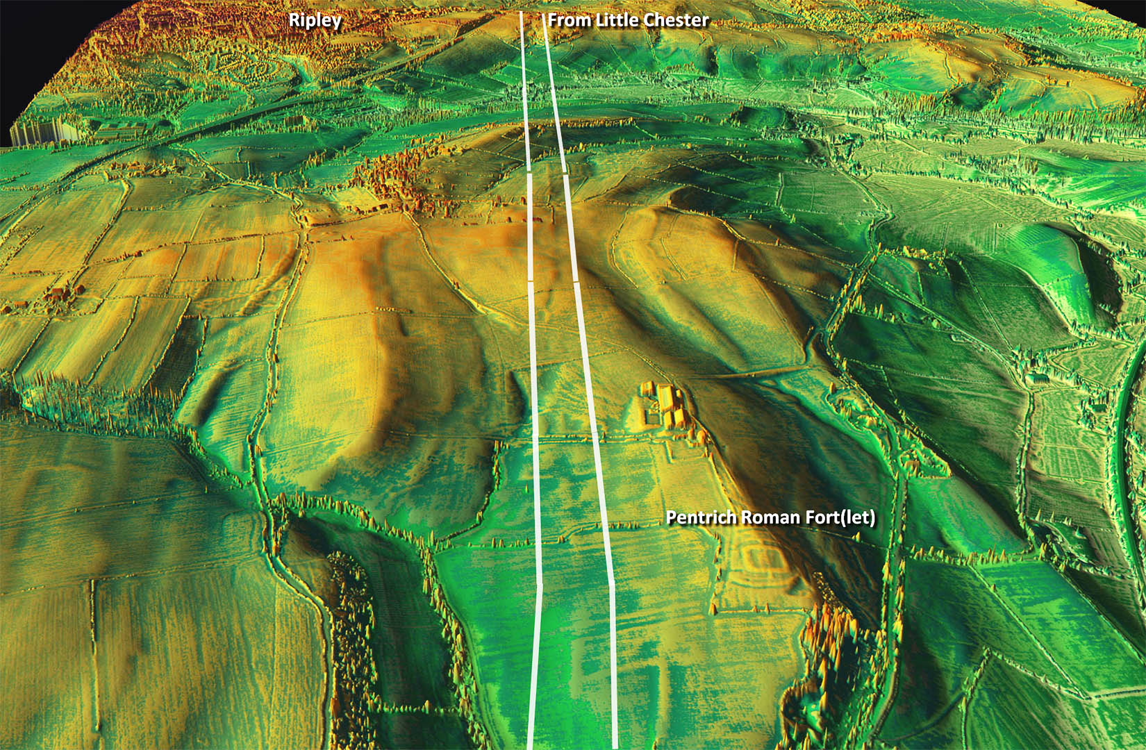 Oblique 3D Lidar Image Passing Pentrich Roman Fort(let)