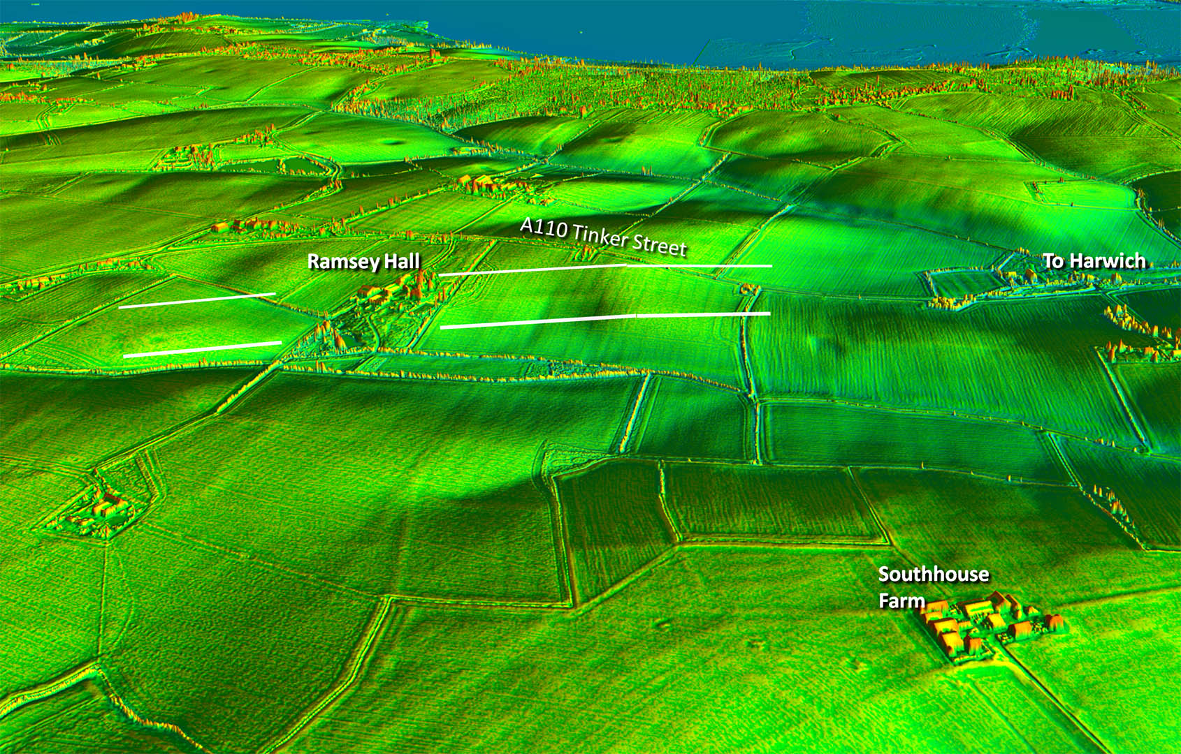 Lidar also revealed a branch of this road and there is good evidence to conclude it went all the way to Harwich. As well as an obvious port, Harwich is source of building stone, which is rare occurrence in in East Anglia. There is also a Roman Villa located at Little Oakley. A Roman road to Harwich therefore would to be expected..