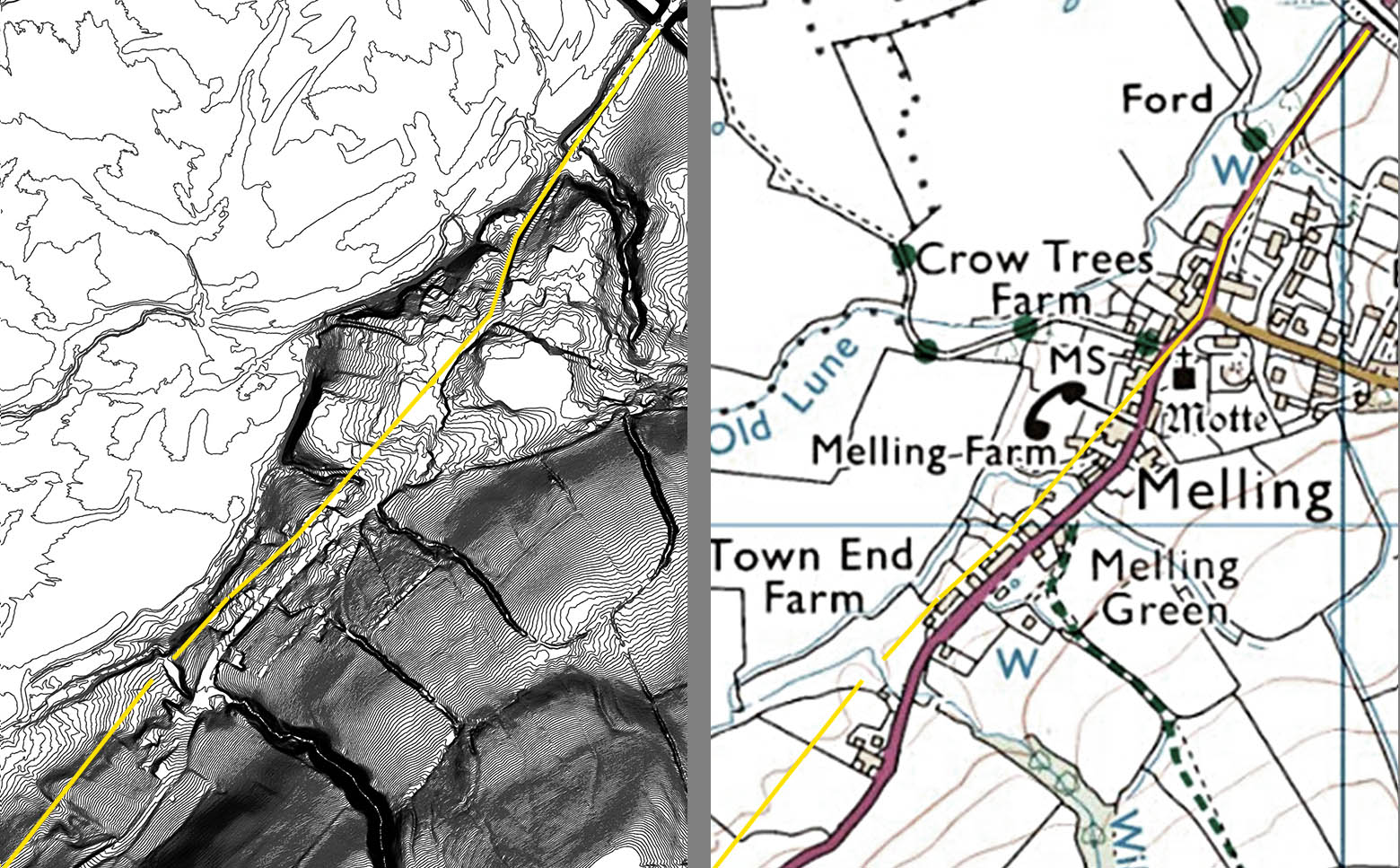 Oblique 3D Lidar Image - Melling The Roman line through Melling could well be on or close to the modern road (see below).