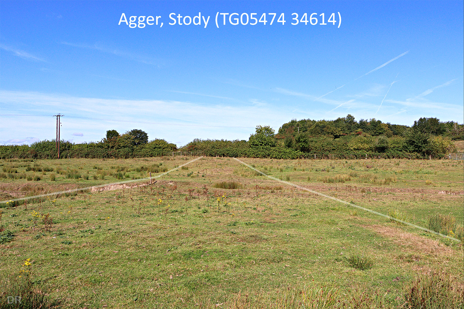 The road here is in the private Stody Estate with no access so this Google Earth view looking from the north is the best we have. The causeway/agger across the valley can be faintly made out.