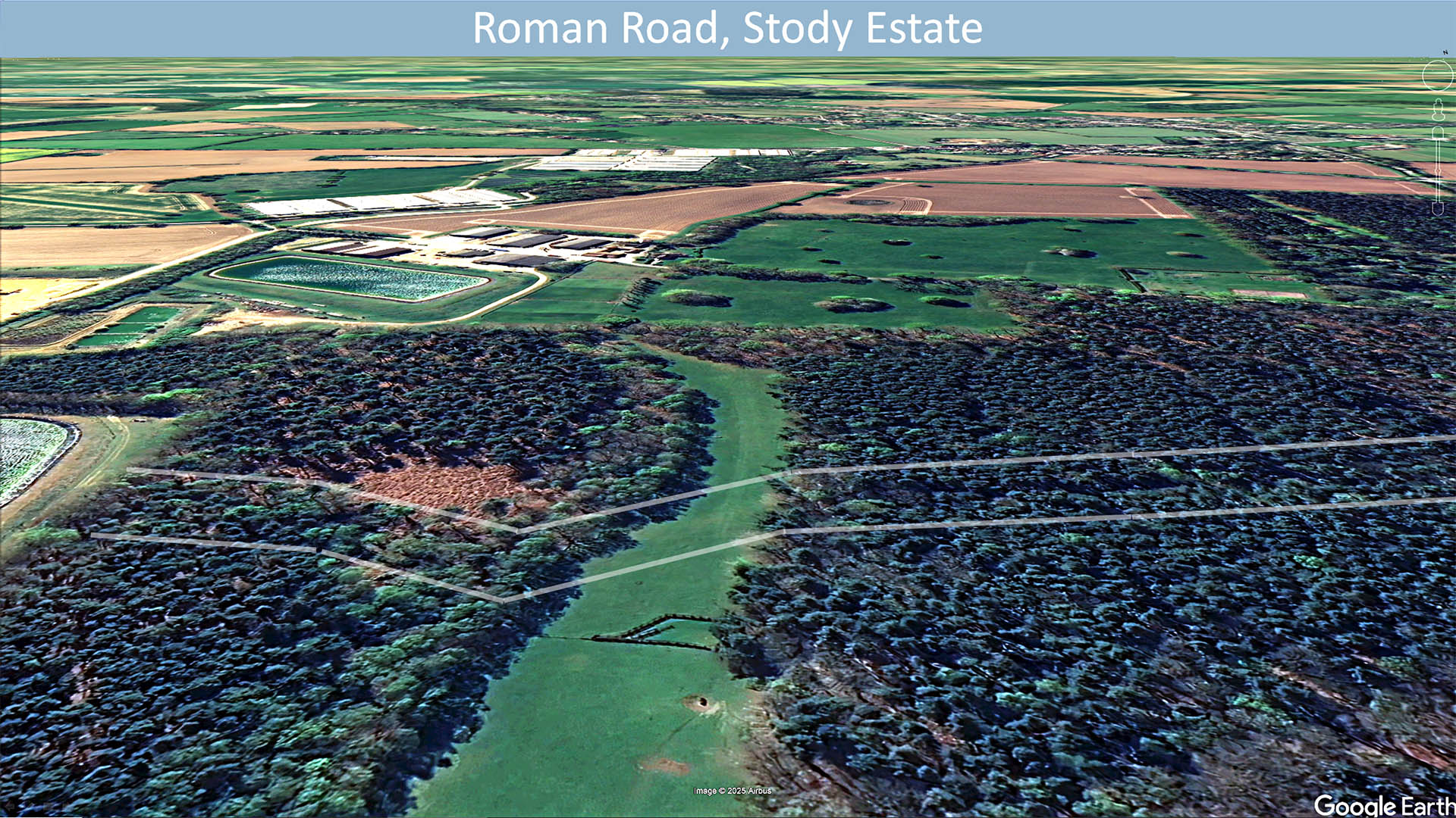 A "new" road discovered in 2025 largely by David Staveley. The first alignment was spotted by Geoff Lunn in 2024. So the north of Norfolk was not ignored by the Romans after all.