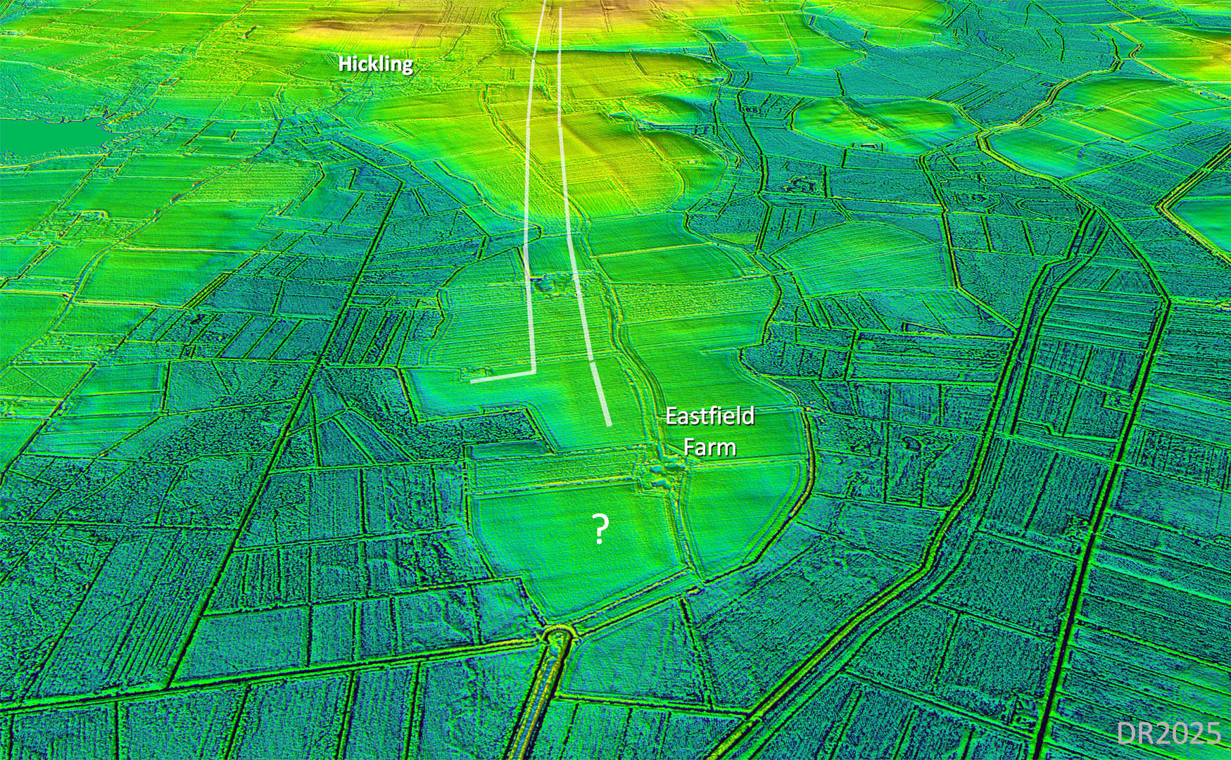 Lidar Image with contours - probable Roman Harbour at Eastfield Farm, Hickling