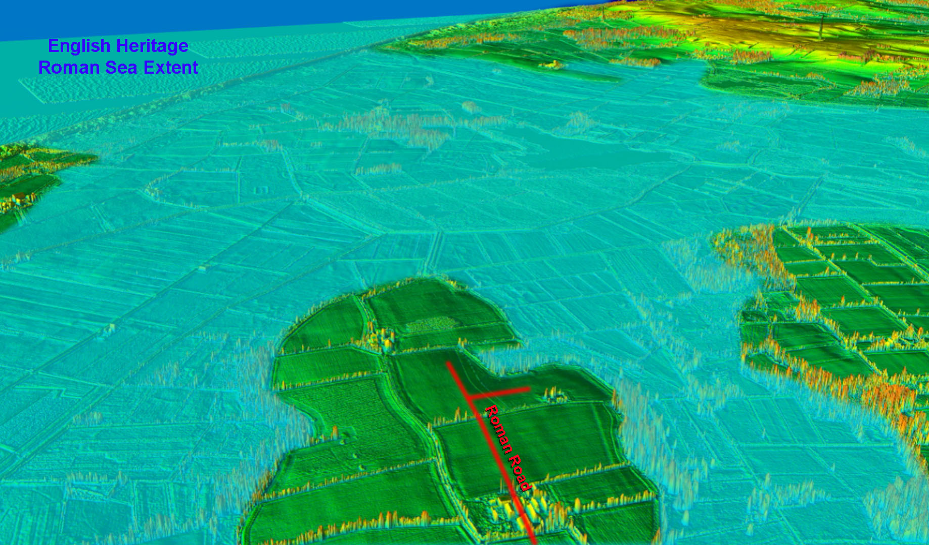 Oblique 3D Lidar Image - Historic England's Roman Sea Extent added
