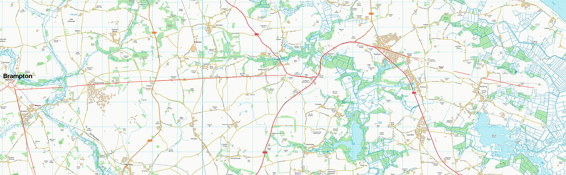 The "new" section crosses the River Ant at Wayford Bridge, heads on through the middle of Stalham and straight on to Hickling, |