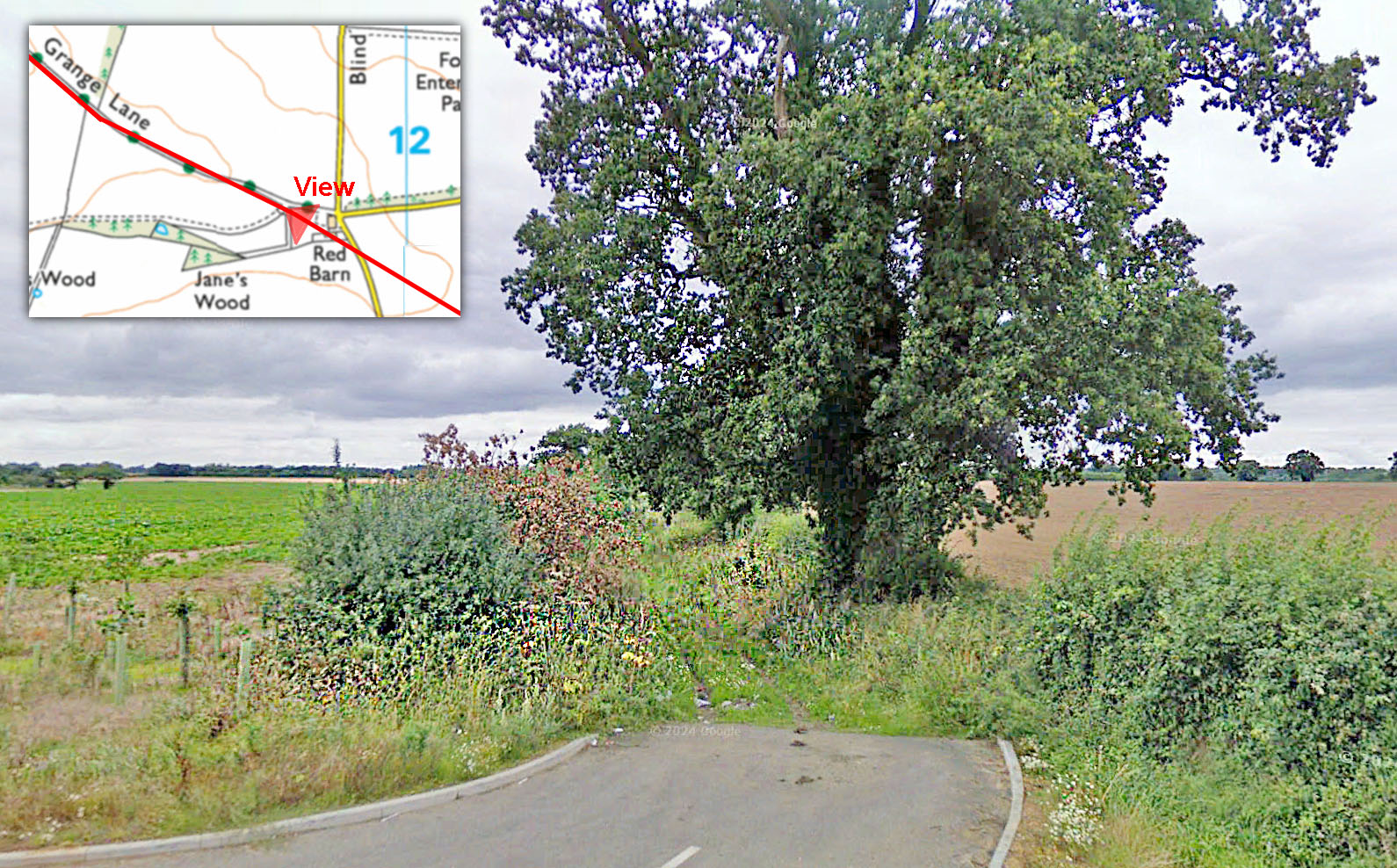 The line of the road merges into Grange Lane here. Although not a dead straight road Grange Lane marks the course for almost one mile.